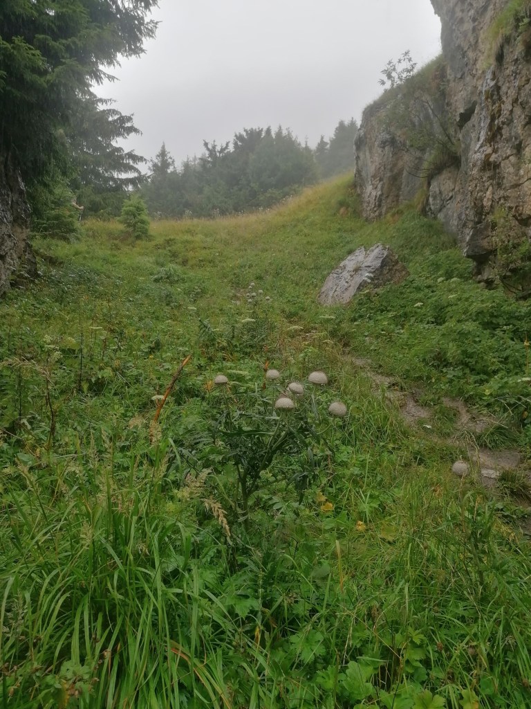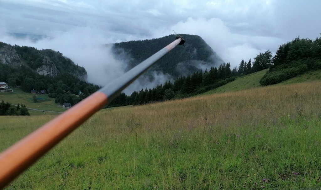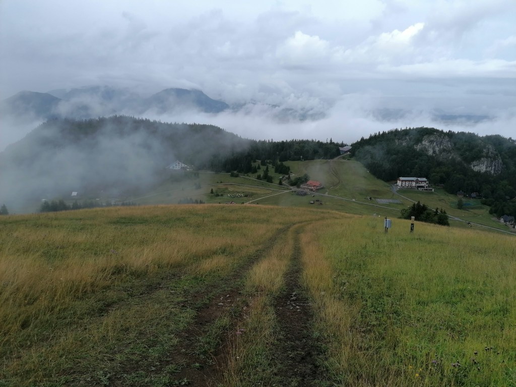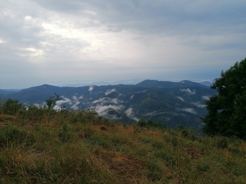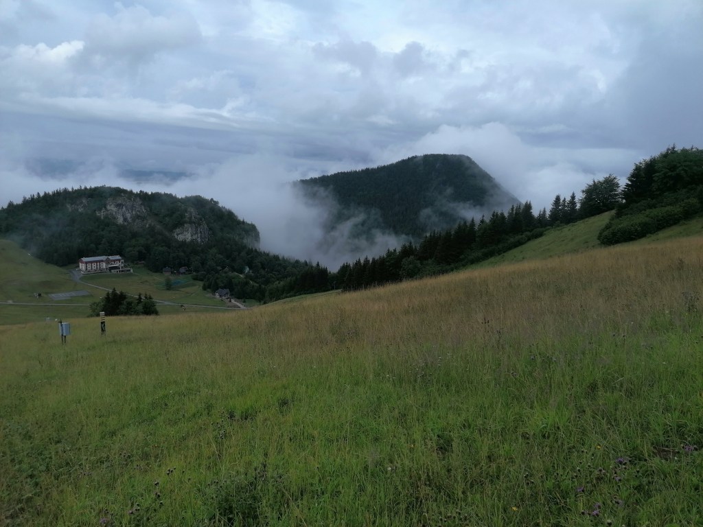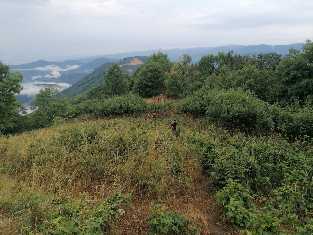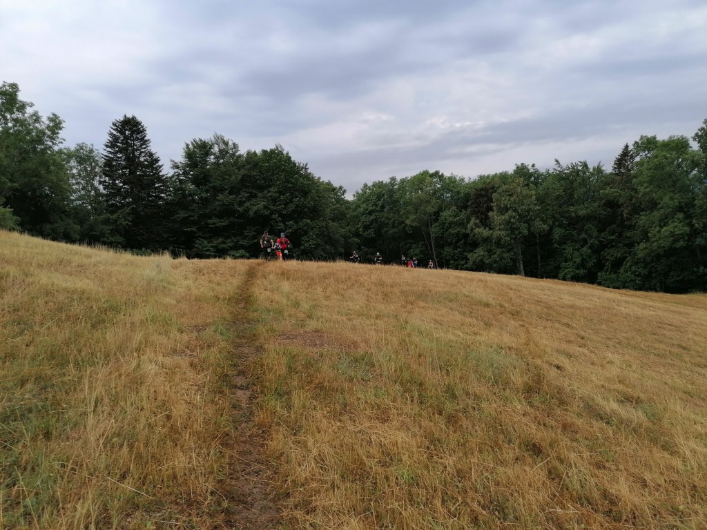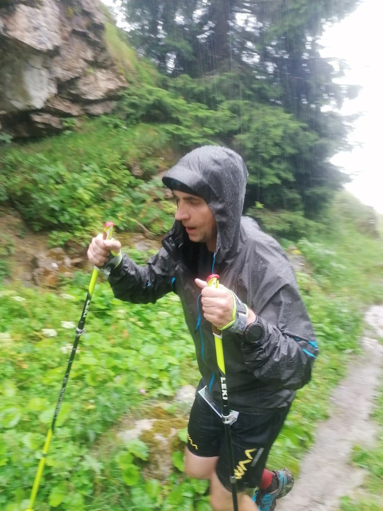 Bežalo (či skôr kráčalo) sa hore celkom dobre, akurát som urobil chybu. V očakávaní dažďa, ktorý mal neskôr prísť, som si obliekol aj cyklistickú bundu, ktorá v daždi dobre hreje, no aj keď som si ju rozopol, začal som sa dosť prehrievať a spomenul som si na vetu dávneho bežeckého a cyklistického kamoša Vaška Schmiedhamera: „Jsem stříkal jak párek“ 🙂 Musel som teda zastať a vyzliecť sa, no celá procedúra aj so zložením batoha a vyzlečením mi trvala vyše minúty, a tak ma obehla početná skupina bežcov a zobralo dosť času a síl, kým som sa predral naspäť.