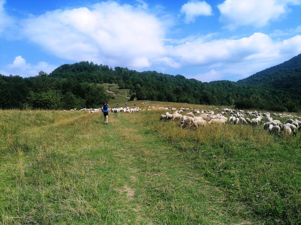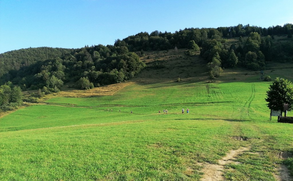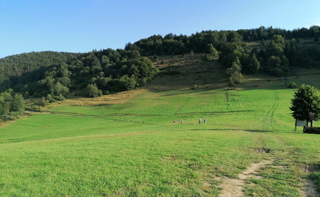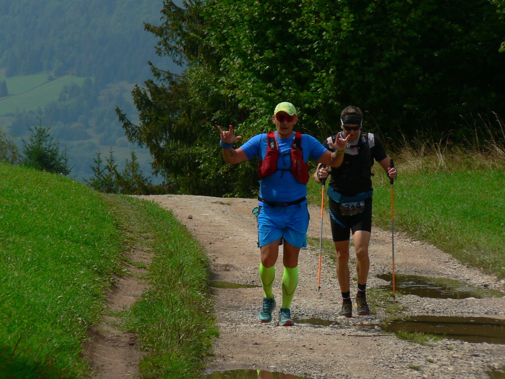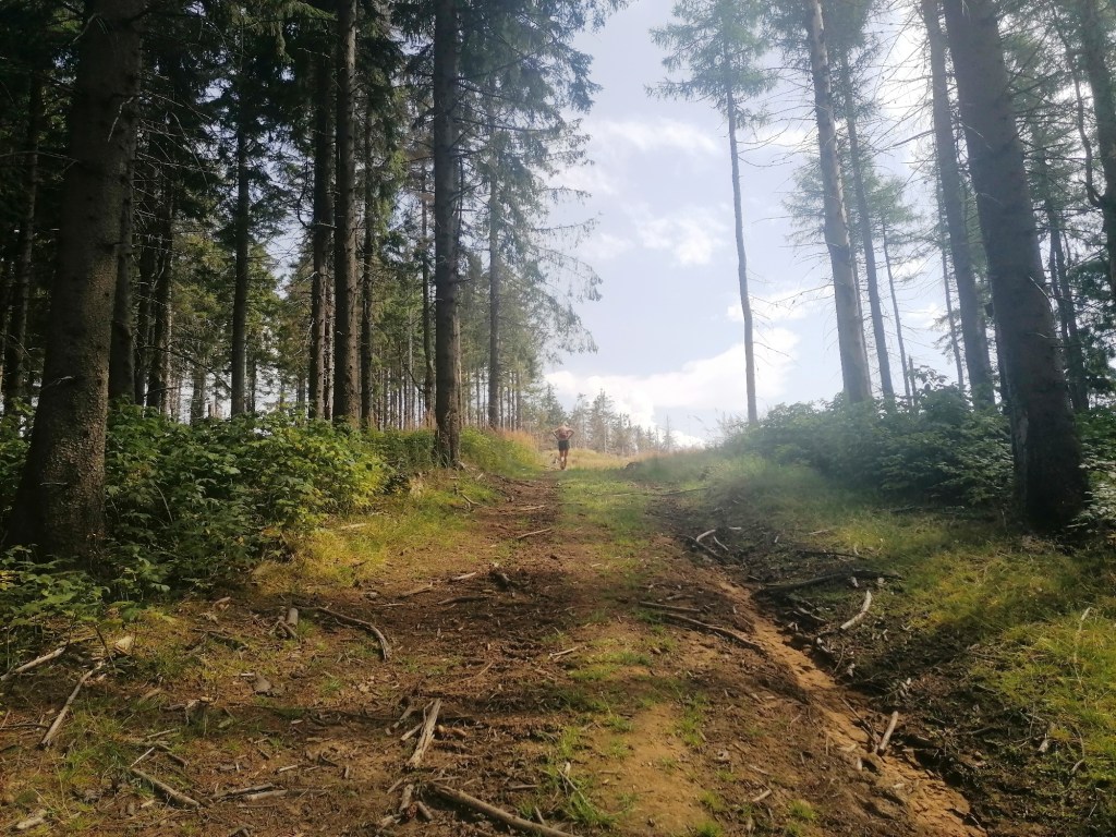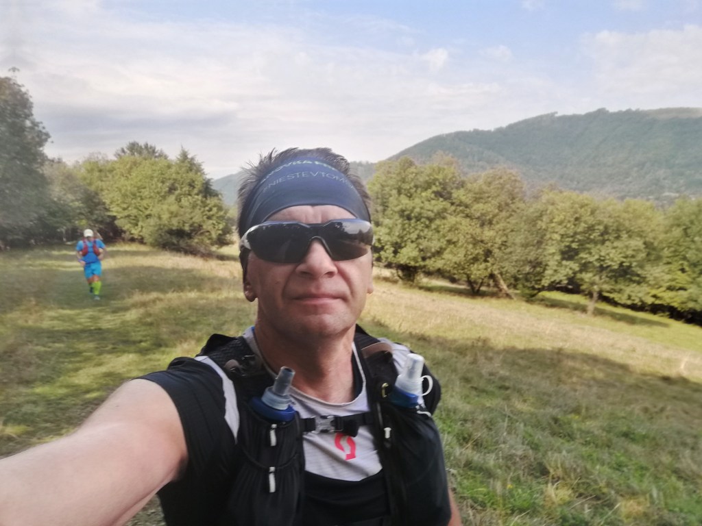 Keď sa cesta po zhruba piatich kilometroch zdvihla do tiahlej zvážnice, tempo som nezvoľnil. Podobné sklony kopcov okolo 5-7 % mám rád, tvoria väčšinu mojich tréningov a zrazu som zistil, že za mnou zostala diera a skupina kamošov bola za mnou v nedohľadne. Tým, že prvá tretina trate bola ľahšia a behateľná, nechcel som sa už zdržiavať čakaním, radšej som išiel svojim komfortným tempom, aby som si na cieľový limit vytvoril dostatočný náskok pre prípad možnej krízy. Dávno mi prvých 20 km po prvý bufet neubehlo tak rýchlo a dávno som nemal na ultra behoch kilometrové medzičasy okolo 5 minút a navyše bez výraznejšieho úsilia a stále s úsmevom a v dobrej nálade. Navyše vo veľmi peknom prostredí, kde sa striedali lesné cesty, drevené lavičky, mierne zbehy a lúky.