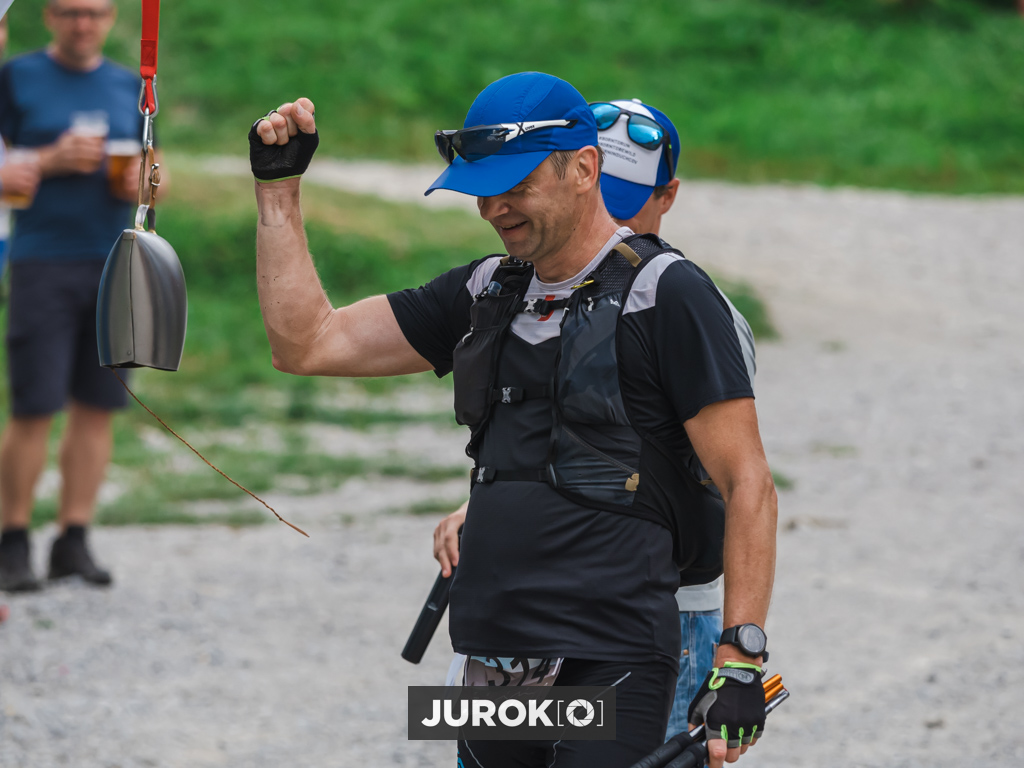 Priznám sa, že posledný úsek 8 kilometrov pred cieľom som podcenil. Na bufete v sedle Hoľa som už natankoval iba 1 fľašku (práve posledný jonťák sa im nejako chuťovo nevydaril), ani som už nič nejedol. Zdalo sa mi, že síl mám dosť a som chcel byť čo najskôr v cieli. Na profile to už vyzeralo iba ako krátke pobehnutie a potom zbeh do cieľa. Po rýchlom prepočte v hlave som si myslel, že to stihnem aj pod 11 hodín. Nohy išli parádne, ešte som aj dokázal zrýchľovať tempo a popri preskakovaní medzi rozbahnenými koľajami som postupne ušiel aj mojim celodenným parťákom. Za každou zákrutou som čakal zbeh, no ten neprichádzal. Ba práve naopak, zakaždým sa vynorilo nenápadné stúpanie. Tak som radšej ešte siahol do zásob a zjedol energetickú tyčinku.