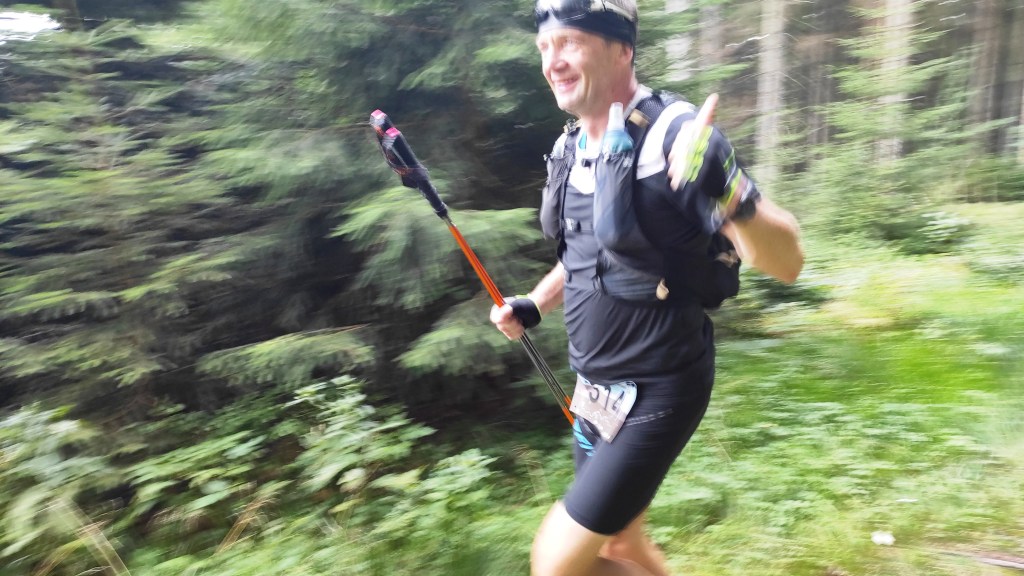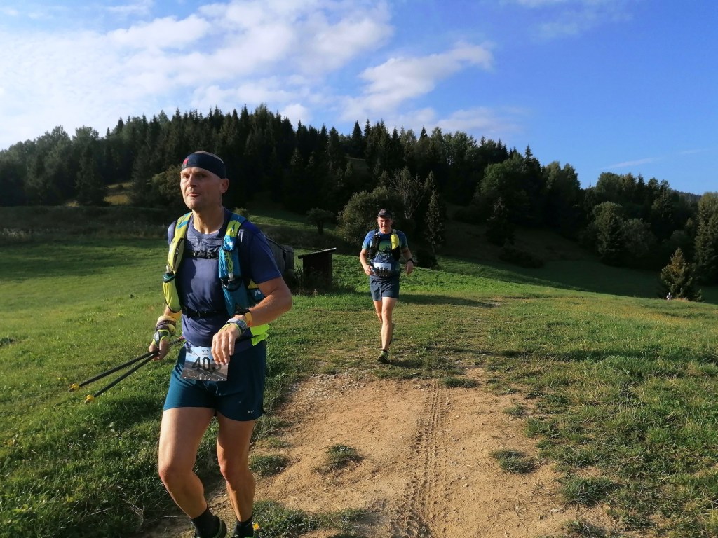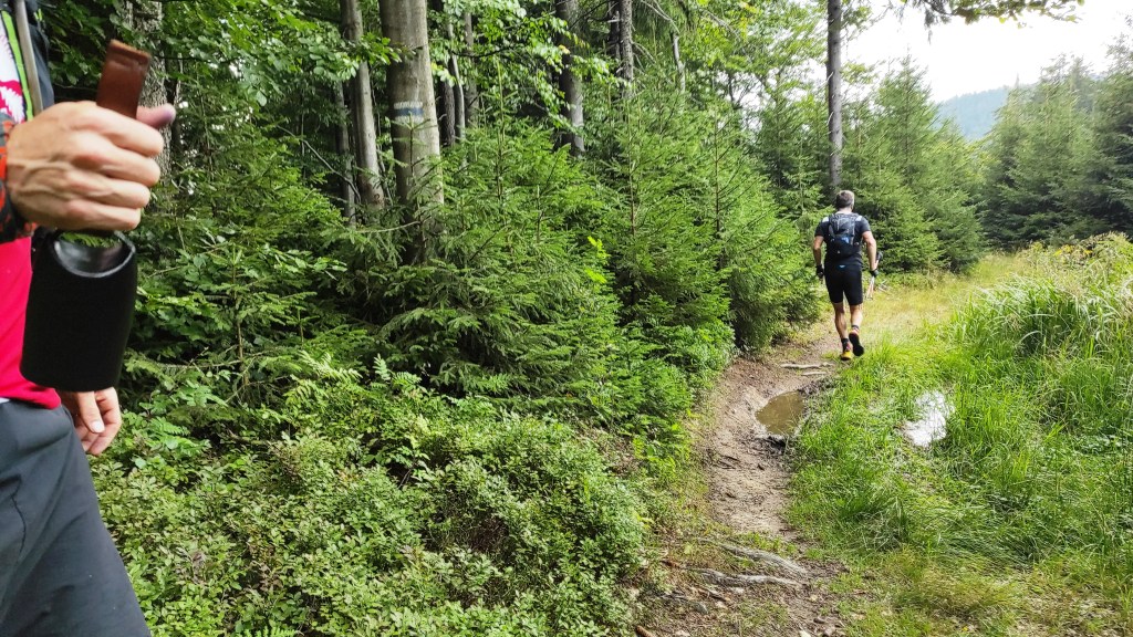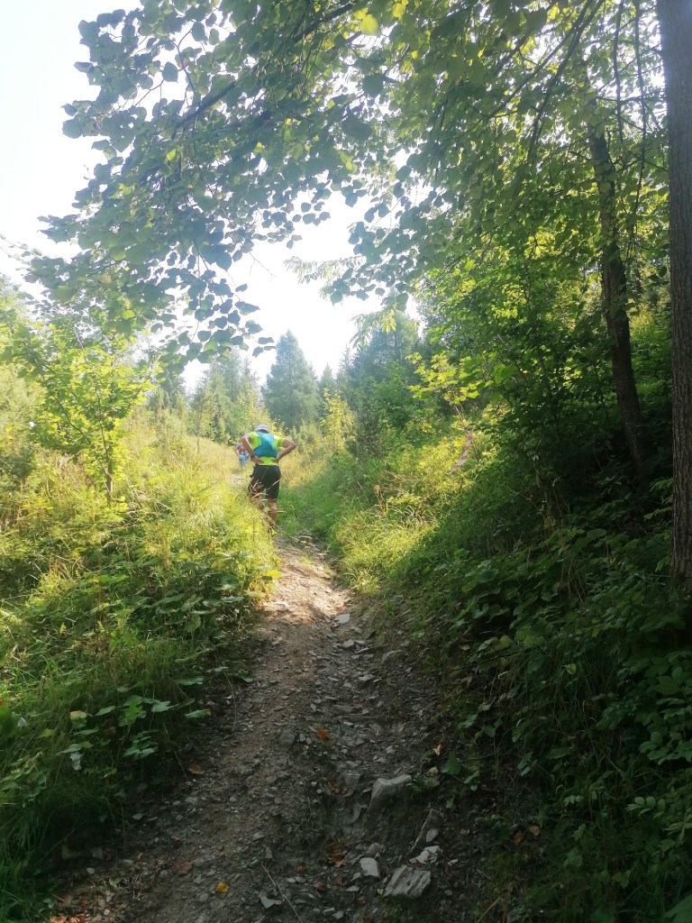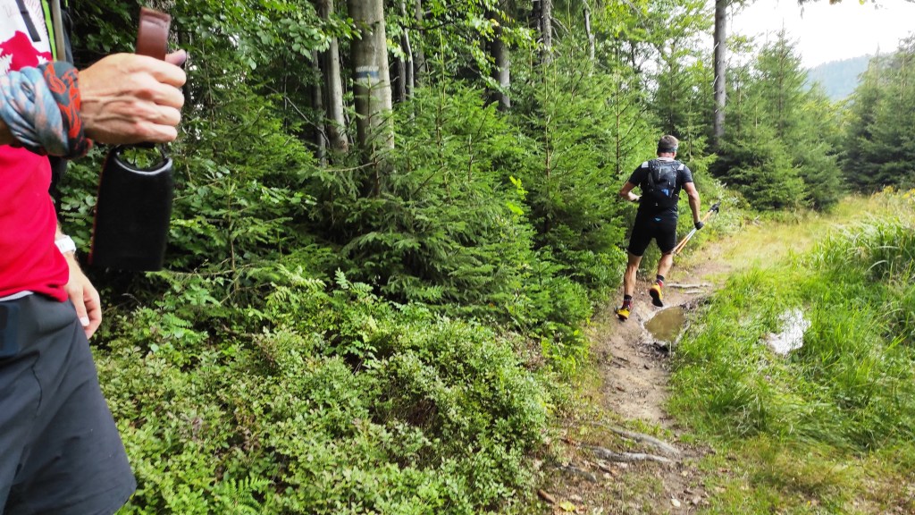 Neviem, či to bolo tým, že zabral gel, ktorý som si dal v polke stúpania, či sladké nápoje na bufete, alebo len uvoľnenie v hlave s vedomím, že máme za sebou najvyšší bod, ale po dotankovaní a opatrnom rozbehnutí som zistil, že nohy idú. Najviac ma potešilo, že držali v zbehu stehná, toho som sa obával najviac. Keď odídu stehná v zbehoch, vtedy sa na ultra behoch strácajú desiatky minút – až hodiny. Keď som to pomedzi paprade stále odvážnejšie púšťal dolu kopcom, už som vedel, že dnes ma nič nezastaví. V eufórii som stretol aj povzbudzujúcu skupinku s Petrou Navrátilovou, ktorá sa vrátila z druhej kontroly a dodávala nám energiu.