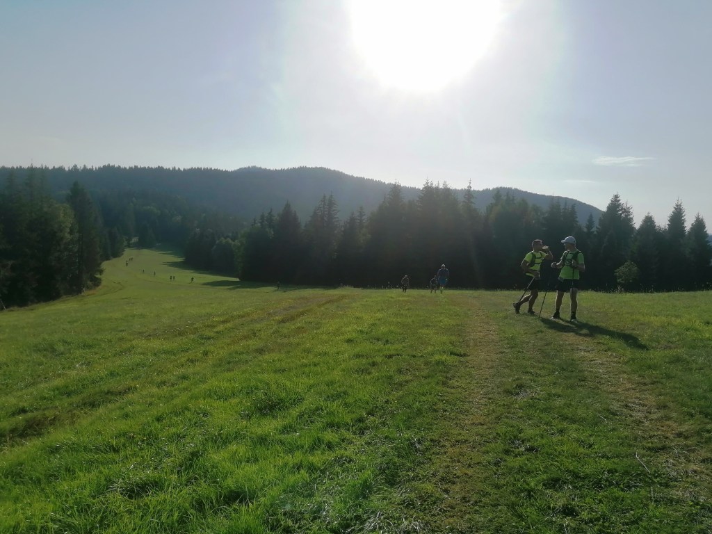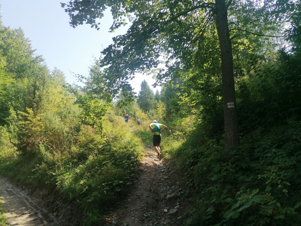 K značeniu – tým, že sa dosť bežalo aj mimo značkovaných turistických chodníkov – bolo miestami dosť náročné sledovať všetky odbočky. Hlavne vtedy, keď sa zo širokej cesty odbočilo na užší chodník. Obvykle som pozeral pod nohy, alebo sledoval bežcov pre sebou a keď som nabral tempo a navigácia v hodinkách zahlásila, že som sa vzdialil z trasy, obvykle už bolo neskoro a takto sa nabaľovalo 100 metrov tu, 100 metrov tam a v cieli bol z toho vyše kilometer navyše. Nebolo to našťastie tragické číslo, ale pri väčšej pozornosti sa tomu dalo vyhnúť, niekedy sme prehliadli aj metrové bielo-červené fáborky, niekedy ich maskovala vysoká tráva.