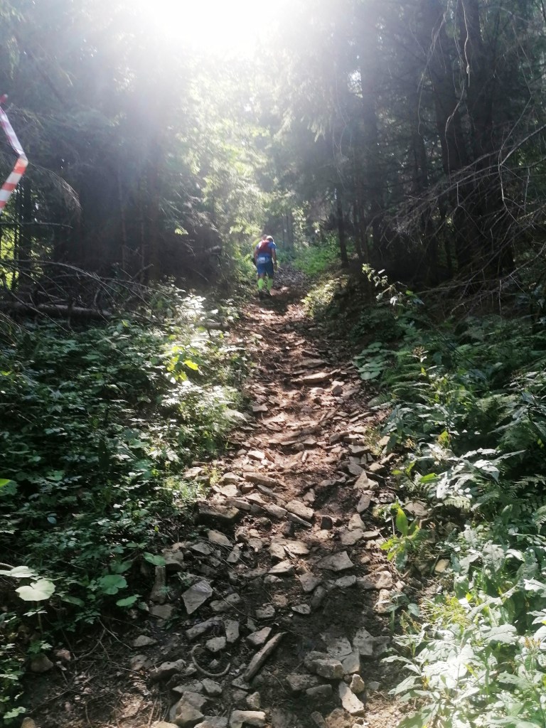 Paradoxne – na strmších úsekoch v druhej polovici kopca, keď sa cesta zvrtla do lesa a chládku, som trochu ožil. Pravidelným tempom som stúpal a radšej som na hodinkách nesledoval kilometre, ktoré ako keby stáli, sledoval som radšej pribúdajúce nastúpané metre. Opäť ma tesne pred vrcholom dobehla východniarska dvojica.