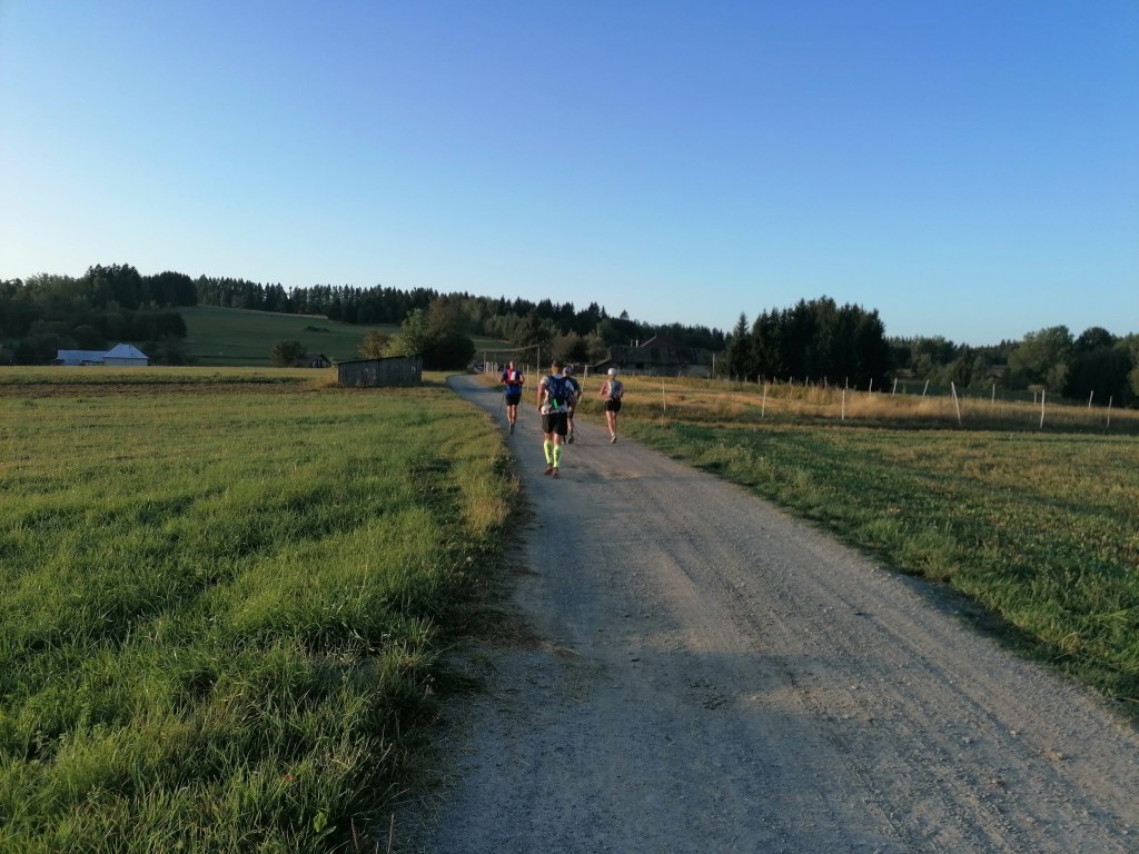 Úsek medzi 4. a 19. kilometrom bol rýchly a behateľný, prvou kontrolou som len preletel, dal si glg coly. Vybiehal som celkom svižne aj krátke kopce, až som si v duchu vravel: „Neblbni, to je stovka, nie hodinový kros“. Keď som si na krátkom miernom stúpaní pozrel priebežné poradie, bol som v tretej desiatke z takmer stovky štartujúcich. Mali sme síce viac nastúpané ako naklesané, ale aj tak boli medzičasy po 11 kilometroch dobré. Chvíľami som aj uvažoval, či som si palice nebral zbytočne, doteraz viac zavadzali, ako pomáhali. Vladovi som zo srandy povedal na základe jednoduchej matematiky, že ak to takto pôjde až do cieľa, za 12 hodín máme fajront. Tento prepočet vyvolal výbuch smiechu v skupine, ktorá bola tesne pred nami :).