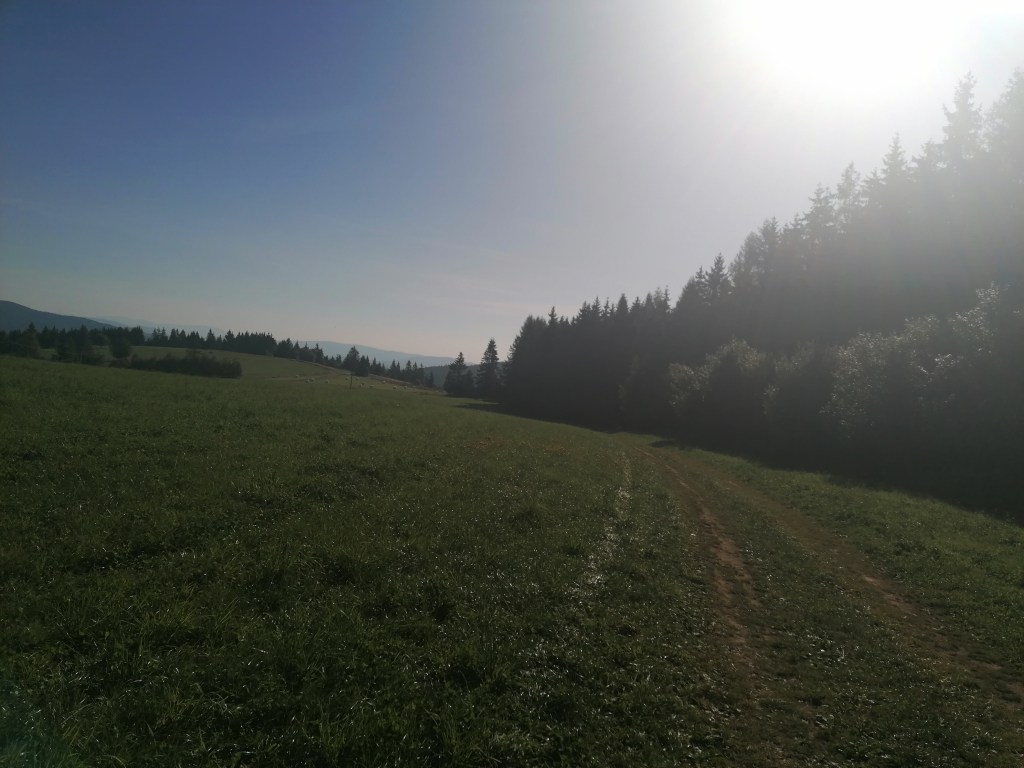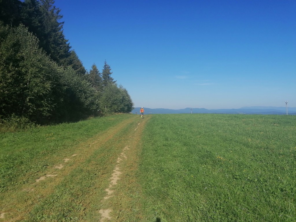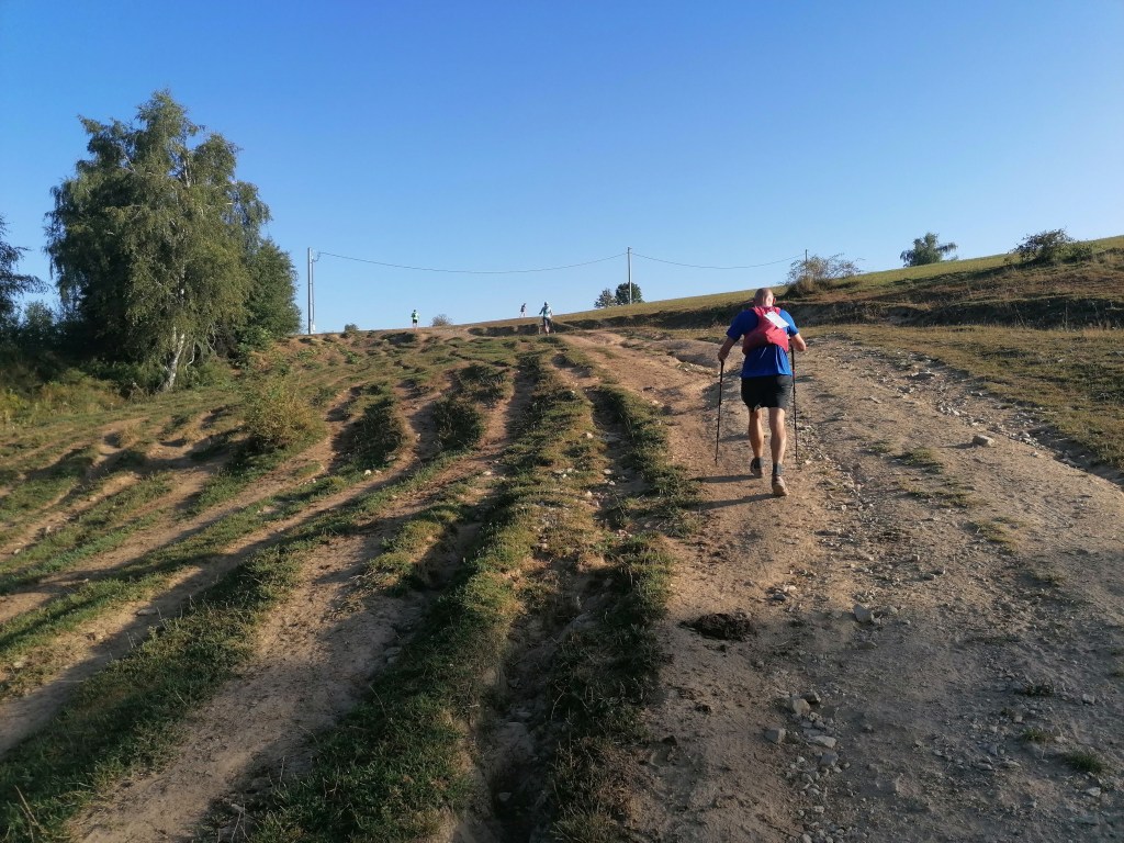 Po tme a za zvuku cikád som sa vydal hore lesnou zvážnicou. Najprv krokom, potom, keď som zistil, že sklon nie je taký strašný, som sa rozbehol. Bolo to poznať na aktuálnom tempe, pri chôdzi 10-13 min/km, pri behu 6-8 min/km. Každá minútka k dobru poteší a kde sa dalo, tak som bežal. Nohy smerom hore stále išli dobre. Na vrchole kopca, keď sme zo zvážnice vybehli na nepokosenú lúku, som znova trochu poblúdil, resp. po tme stratil cestu. Celkovo bola trasa značená výborne, tu som však vo vysokej tráve stratil stopy a na dohľad neboli žiadne reflexné odrazky. Musel som tak vytiahnuť na mobile trasu a podľa gps značky som nejako našiel čiaru so správnou trasou.