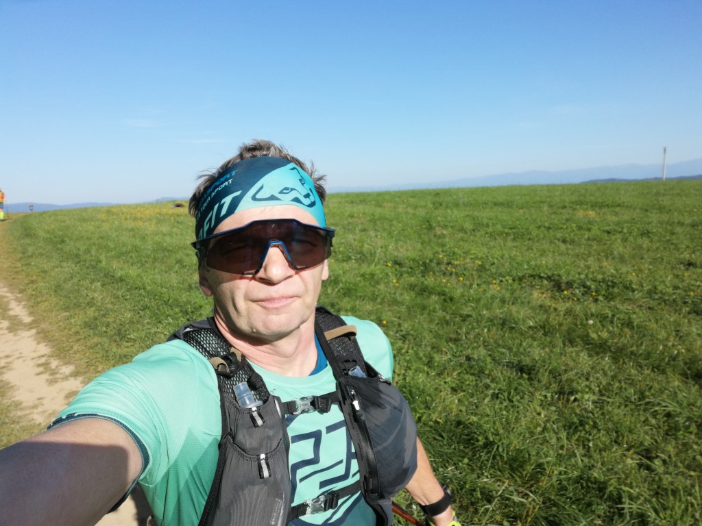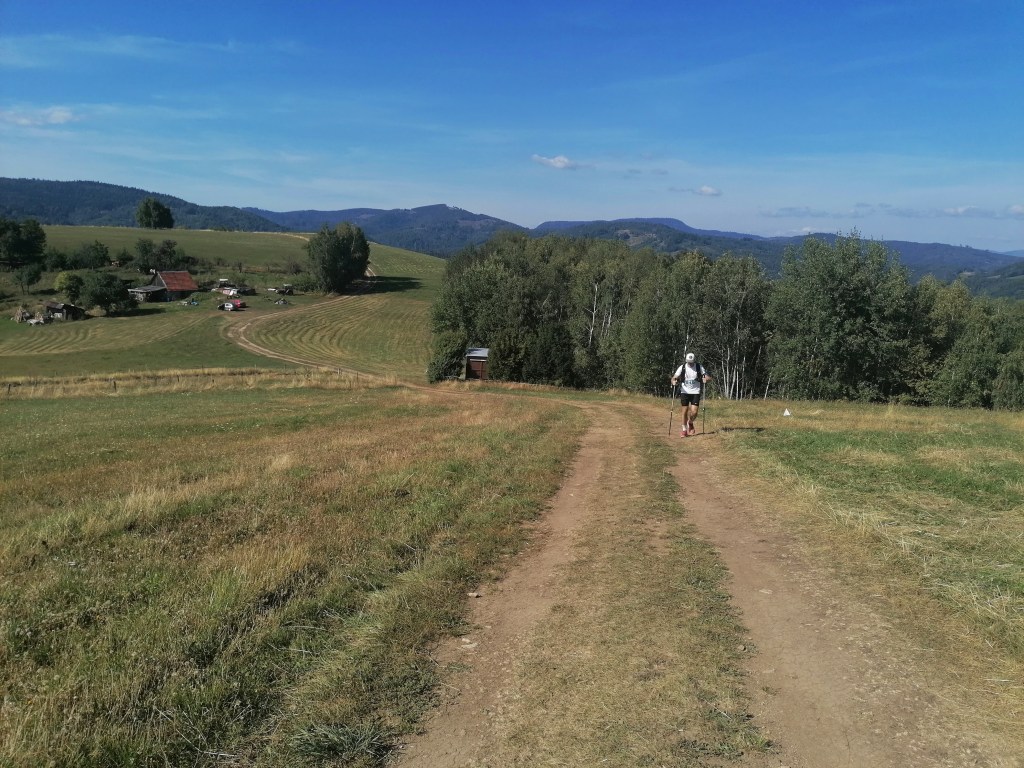 Potom prišla prvá wc zastávka – nútená, no tak trochu aj záchranná. Síce znamenala ďalší časový prestoj, no postupne som po nej začínal chytať druhý dych a na zvlnenom lúčnom hrebeni som sa znova dostával do tempa a vybiehal stúpania a aj mierne zbehy mi celkom išli. Pohľady na hodinky však stále varovali, že sme len v polovici. Ale práve tá polovica býva psychologickým zlomom a kilometrov k cieľu je už menej ako od štartu. Ja si na hodinkách na neznámych ultra trasách väčšinou nechám primárne svietiť výškový profil. Vidím tak okrem ubehnutého času, či mám pred sebou kopec, zbeh, aký je dlhý, aký strmý a koľko z celkových nastúpaných metrov už mám za sebou.
