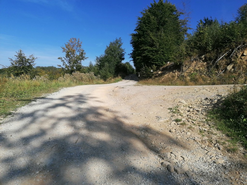 Po opustení bufetu som sa už za šera vydal ďalej. Znova sám a po rade miestnych, že za cintorínom doprava, som ti to struhol rovno hore vedľa cintorína. Tam ma zastavila bránka a aj pípanie navigácie, že som mimo cesty. Na šípke s odbočkou stálo zaparkované auto, ale cestu som našiel. Ďalších skoro 5 minút fuč a k tomu 500 metrov navyše. Potom pri východe z Málinca ma pristavili dve dievčatká a ponúkali plné náručie sladkostí. Vravel som, že teraz som plný a jedol som, ale nedali sa: „Zoberte si na neskôr. A fandíme vám!“ Opäť veľmi milé a povzbudzujúce.