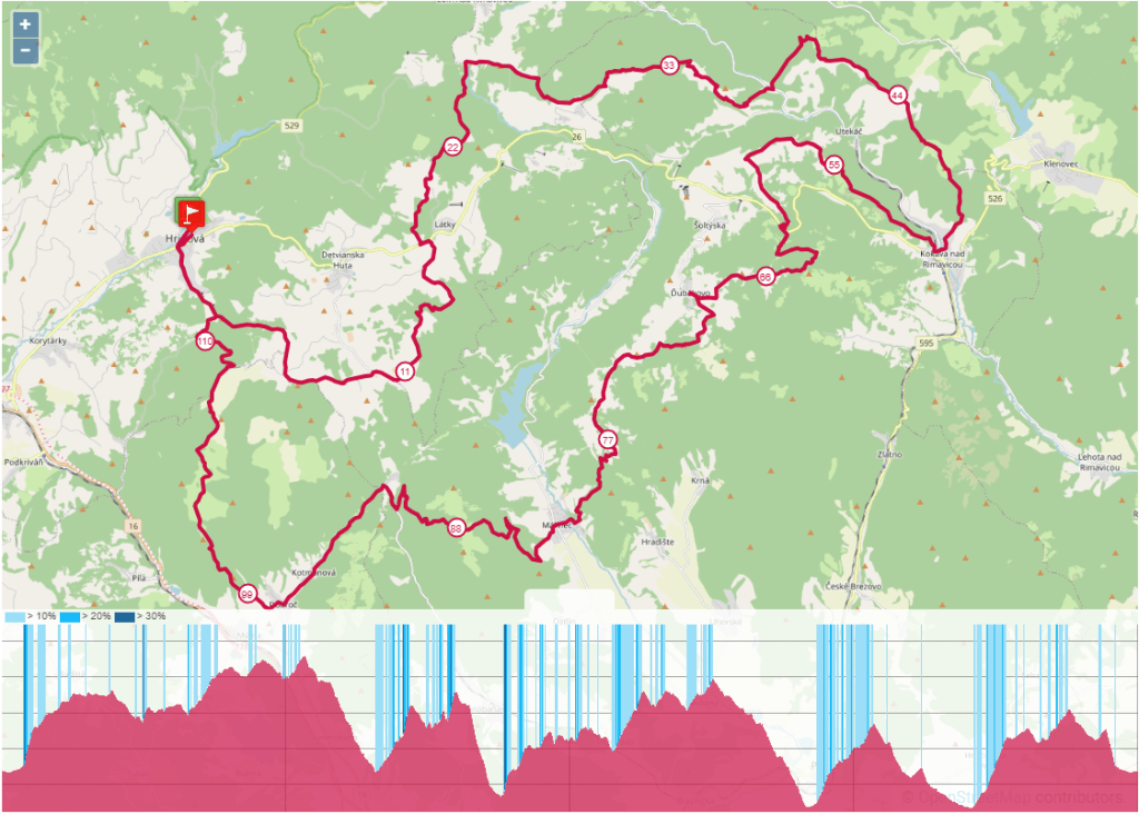 Hriňovská stovka mala mať oficiálne 114 kilometrov a 4800 nastúpaných metrov, asi každému nameralo o 1-2 kilometre viac, ja som si nejaký kilometer asi aj nadbehol krátkymi neplánovanými odbočkami, mne vyšlo podľa hodiniek prevýšenie okolo 4500 m.